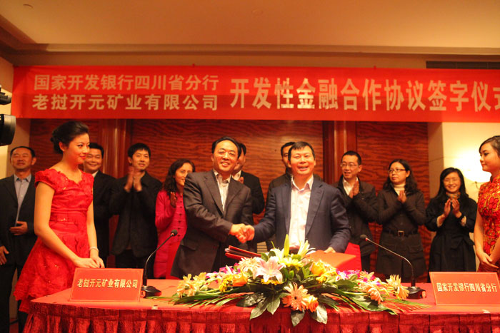 2012年11月14日下午,亞洲鉀肥集團有限公司所屬的老撾開元礦業(yè)有限公司(簡稱老撾開元)與國家開發(fā)銀行四川省分行在凱賓斯基飯店舉行開發(fā)性金融合作協(xié)議簽字儀式。國家開發(fā)銀行四川省分行黨委書記、行長王中,副行長彭忠,集團董事長、老撾開元董事長趙思儉、副總裁余曉波等領(lǐng)導代表出席了簽字儀式。