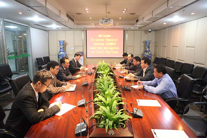 趙董事長首先對Achong Laomao局長的來訪表示了熱烈的歡迎。長期以來,集團(tuán)老撾鉀鹽項(xiàng)目獲得了老撾總理府及各級政府的大力支持,他深表感謝。接著趙董事長向Achong Laomao局長介紹了老撾項(xiàng)目目前的生產(chǎn)建設(shè)情況并觀看了宣傳片。Achong Laomao局長對老撾項(xiàng)目取得的成績和發(fā)展情況贊不絕口。他說,開元集團(tuán)老撾鉀鹽項(xiàng)目是中老兩國合作的典范工程,老撾投資總局必將大力支持,他回國后一定要到項(xiàng)目現(xiàn)場考察調(diào)研。