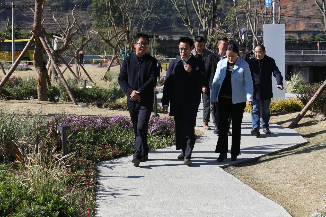 李總陪同萬書記參觀了公園溪地景觀,并就項目的規(guī)劃設(shè)計理念和景觀建設(shè)的相關(guān)情況進行了介紹。