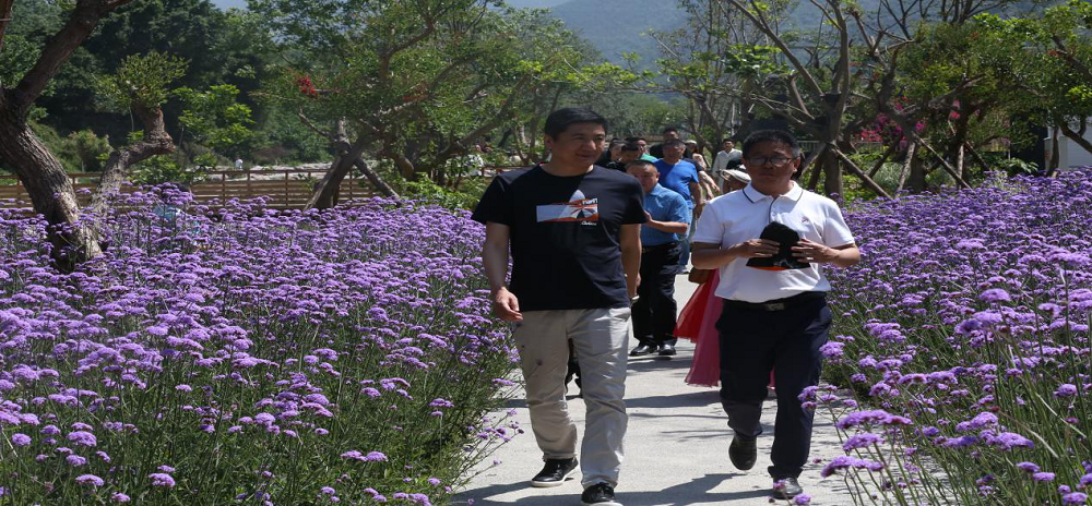 隨后考察團沿溪邊步道一路行向澗茶臺,當(dāng)下恰逢公園花卉盛開季,大家一邊暢談交流,一邊領(lǐng)略美麗風(fēng)景。