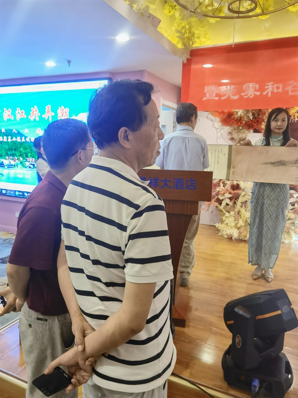 著名節(jié)目主持人、軍旅歌唱家戴潔;著名特型演員、周恩來扮演者李鐵等書畫家、藝術家參加了慶典活動,并進行了表演。