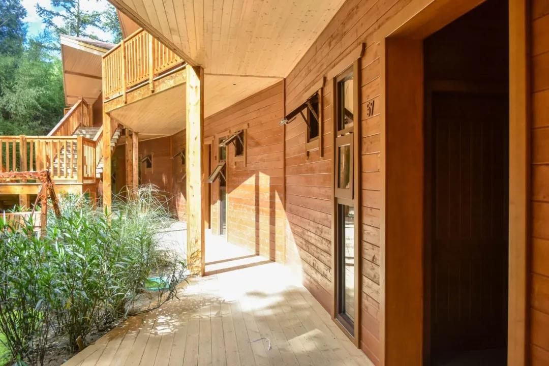 客房分為“巴山”及“秋水”兩個區(qū)域,由19棟全木結構建筑組成,擁有56間45平米-138平米的豪華客房與獨立套房。每間客房均設有寬敞露臺,目之所及滿山翠綠,碧波蕩漾。