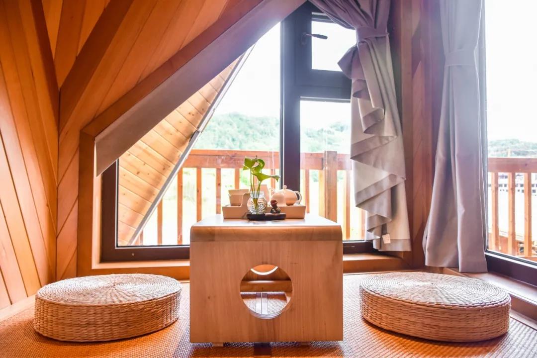 在木屋文化的發(fā)源地愛沙尼亞,木屋被稱為“同居住者共呼吸”的建筑。因為木屋結構建筑通過合理設計與布局,適量吸收太陽光線,雨季還能調節(jié)室內(nèi)濕度。走進客房內(nèi),便能聞到木材散發(fā)出富含芬多精的原木清香。角落里特設的榻榻米和精致茶臺,更是讓客人得以在迷人景致中舒坦心境,享受靜謐空間。