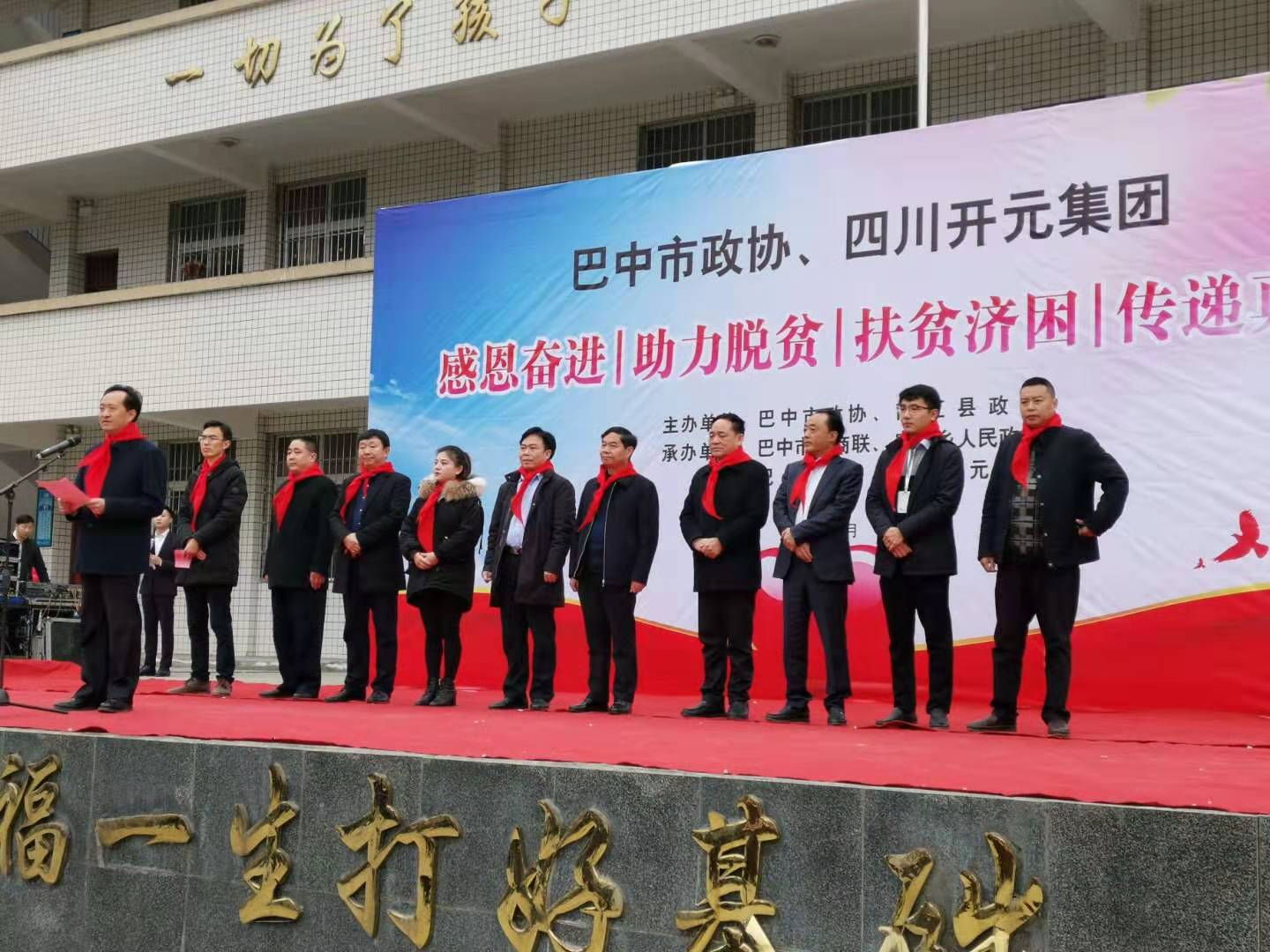 2月22日,在巴中市政協(xié)“創(chuàng)引幫”活動(dòng)的感召下,由市政協(xié)、四川開(kāi)元集團(tuán)主辦,市工商聯(lián)、南江縣委縣政府,南江縣政協(xié)、寨坡鄉(xiāng)黨委政府、巴商總會(huì)和四川南江光霧和谷旅游開(kāi)發(fā)公司協(xié)辦的寨坡鄉(xiāng)助學(xué)、助老、助殘活動(dòng)在寨坡小學(xué)隆重召開(kāi)。